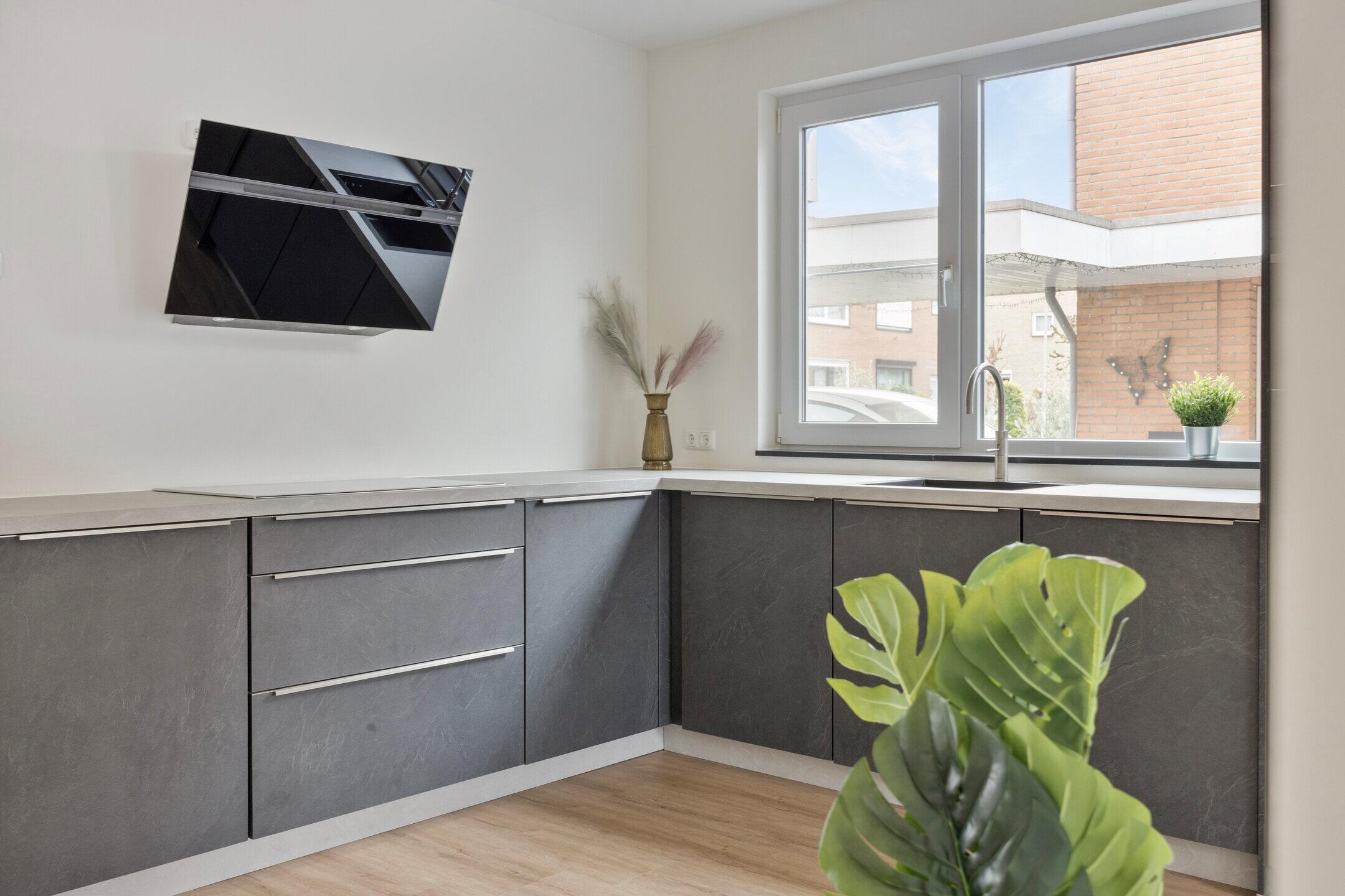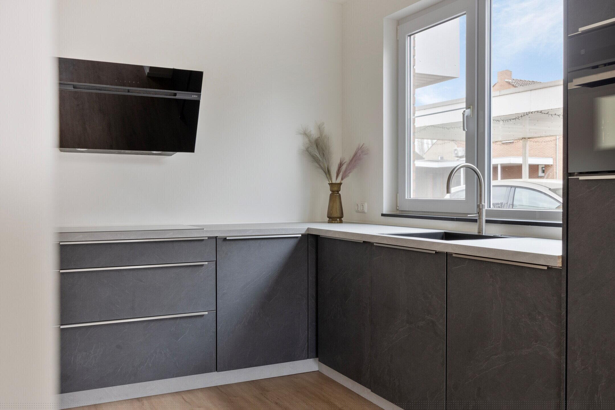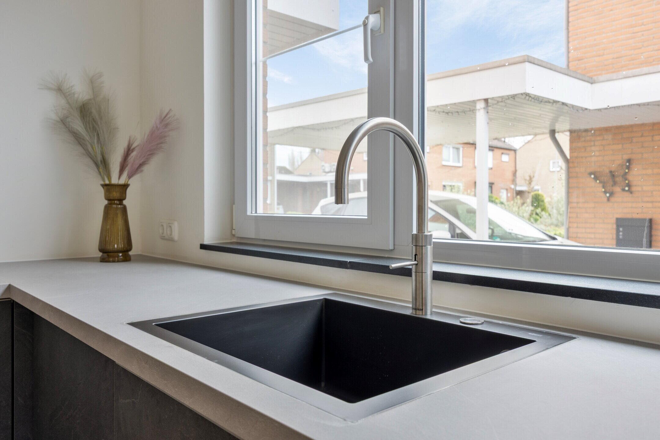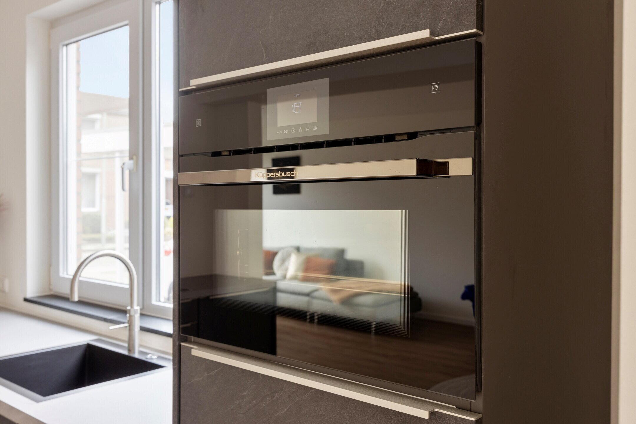 De moderne keuken is stijlvol uitgevoerd en voorzien van hoogwaardige inbouwapparatuur, waardoor deze een echte eyecatcher in de woning vormt. De keuken beschikt onder andere over een inductiekookplaat van Bosch, een design afzuigkap van Elica, een Bosch vaatwasser, een Bosch koelkast en separate vriezer, een Quooker kokend waterkraan en een luxe stoomoven van Küppersbusch. Een perfecte plek voor kookliefhebbers en het ontvangen van familie en vrienden tijdens gezellige diners.