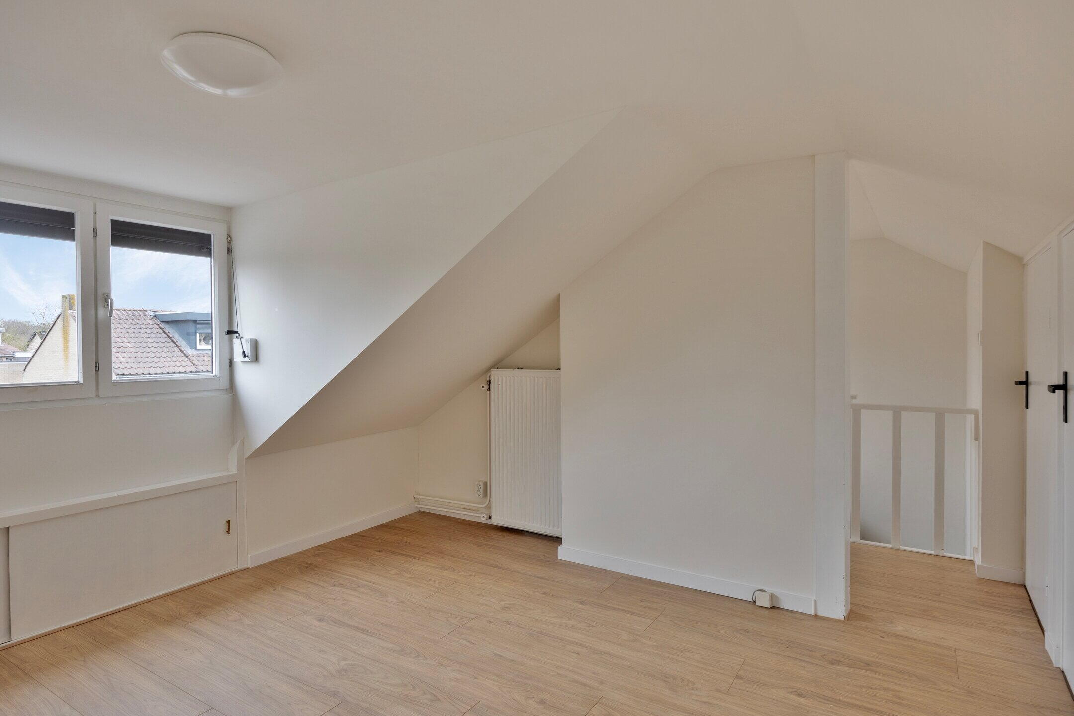 Via een vaste trap bereik je de tweede verdieping. Hier bevindt zich een ruime overloop en een vierde slaapkamer met dakkapel, waardoor deze verdieping verrassend veel ruimte en licht biedt. Onder de knieschotten is extra bergruimte aanwezig. Deze verdieping is ideaal als extra slaapkamer, werkruimte of hobbykamer.